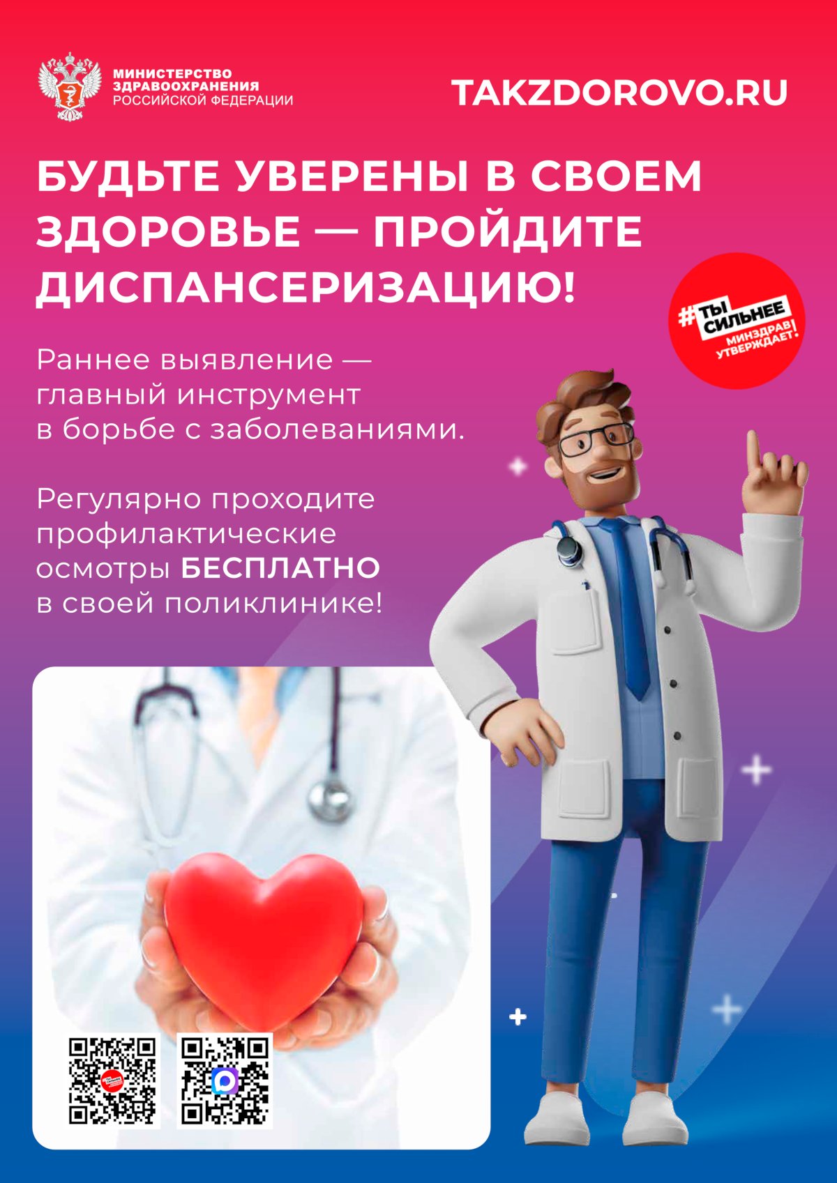 Рекламно-информационные материалы Официального Интернет-портала Минздрава России о здоровье Takzdorovo.ru с QR-кодом, ведущим на официальный канал Минздрава России в социальной сети МАХ.